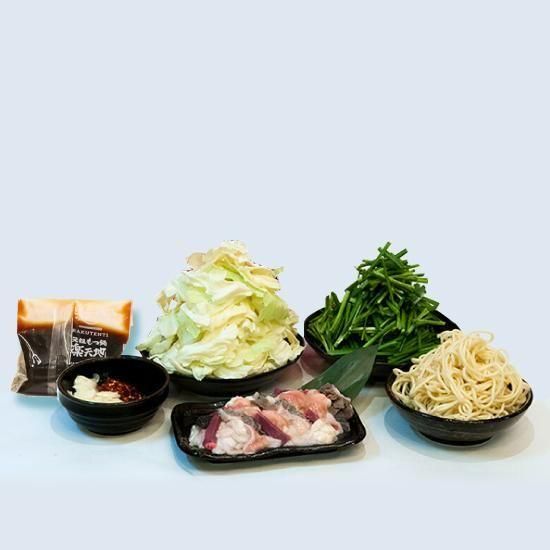 セット内容/牛もつ(300g)×1袋、ス―プ(120ml)×1袋、ちゃんぽん(2玉)×1袋、キャベツ(400g)×1袋、ニラ(200g)×1袋、にんにく、赤唐辛子